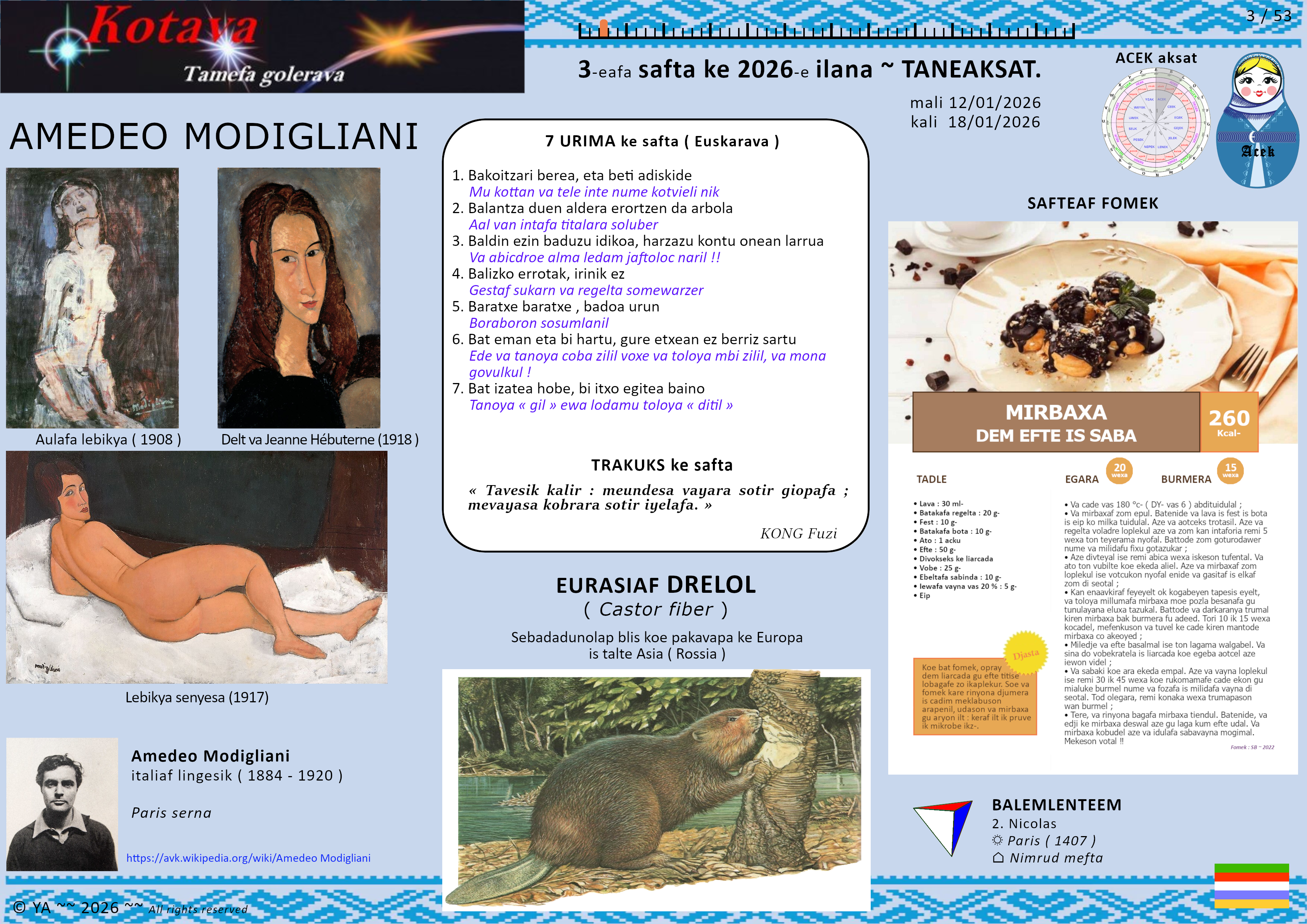 Yunkeyen saftak tori 2026-e ilana ( 3-eafa safta, 12/01/2026 – 18/01/2026 ).