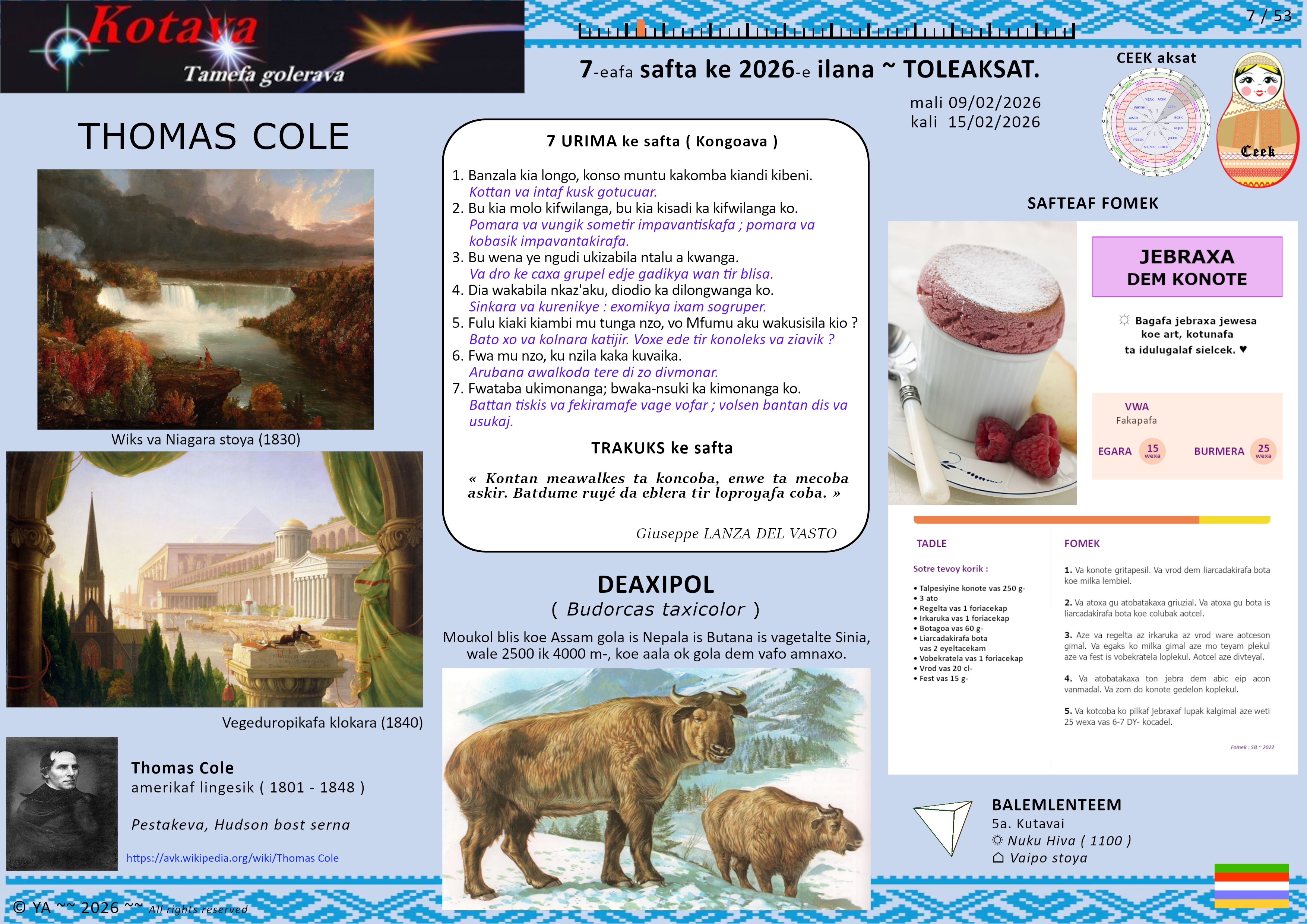Yunkeyen saftak tori 2026-e ilana ( 7-eafa safta, 09/02/2026 – 15/02/2026 ).